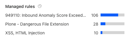 After generating enough requests to have a good sample logged in your Firewall Events, observe the actions that were taken in the Managed rules section: